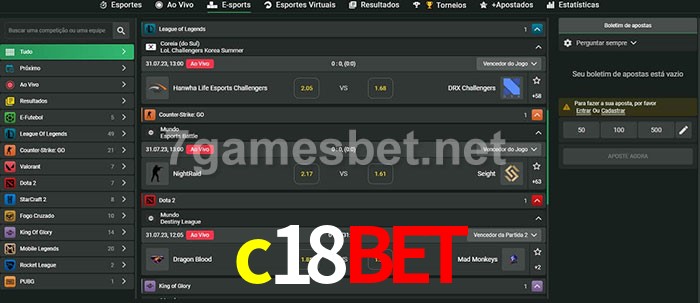 O c18bet oferece uma grande seleção de opções de apostas em e-sports com probabilidades competitivas